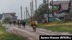 На улице очень холодно, почти без перерыва моросит дождь. Но привычного ритма деревенской жизни он, похоже, не нарушает. Мимо избирательного участка бредут предоставленные сами себе коровы.