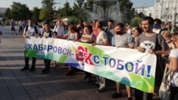 Полицейские просили прекратить публичное мероприятие, не согласованное с органами власти и в мегафон напоминали собравшимся об административной ответственности. Тогда протестующие начинали сканировать "Хабаровск, мы с тобой", "Когда мы едины, мы непобедимы", "Мы здесь власть", "Россия, выходи, Фургала поддержи"," Просыпаетесь, города, с нашей родиной беда".